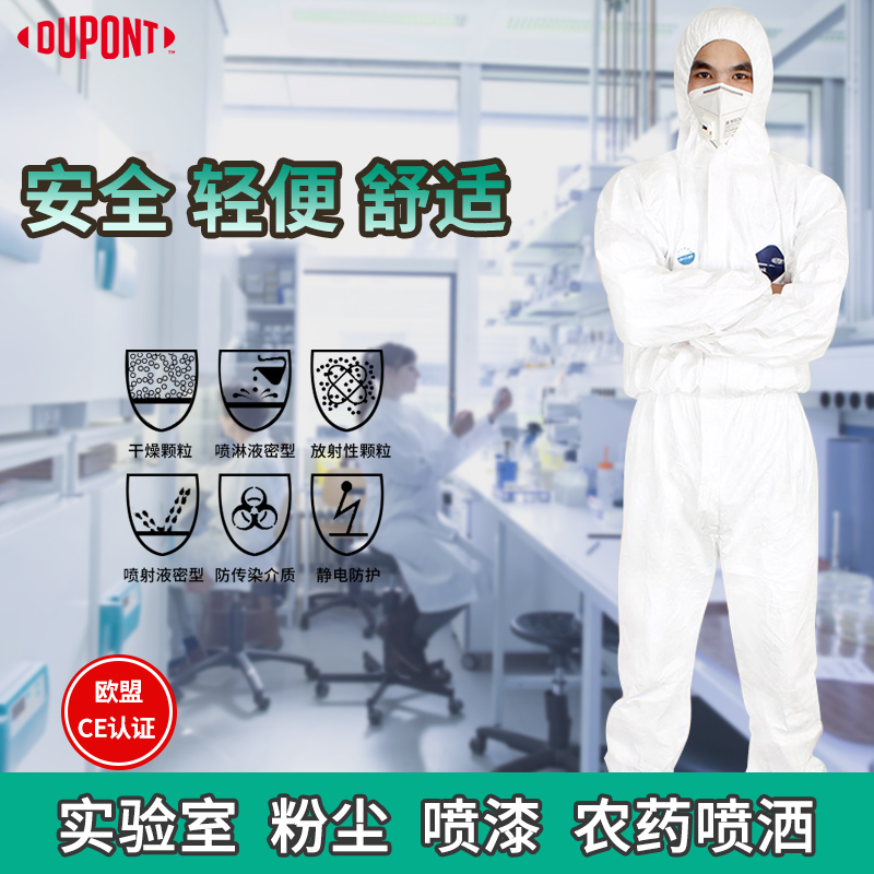 杜邦1422A工業連體帶帽防護服 防噴漆粉塵農藥靜電玻璃纖維隔離衣 防護效果佳,輕便舒適,透氣性良好